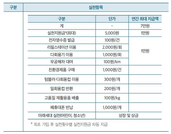 참여혜택 : 참여자가 선택한 지급수단으로 개인별 포인트 지급(연간 1인당 최대 7만 원)