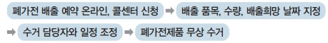신청방법 : 온라인 신청(폐가전제품 배출예약 시스템 www.15990903.or.kr), 전화신청(1599-0903)