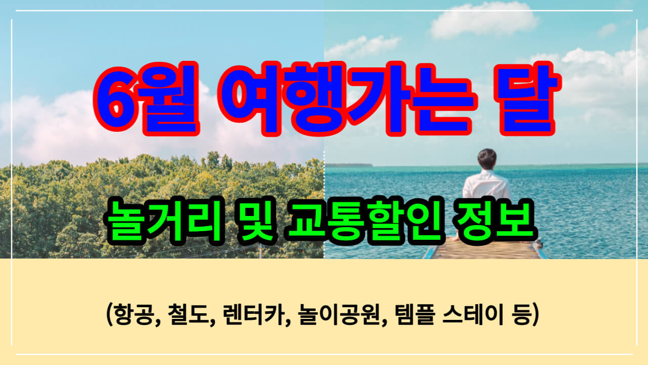 어제(23년 6월 1일) 부로 코로나 확진 시 격리 의무에서 권고로 조정되면서 격리 불안이 해소되었습니다. 정부에서도 6월은 여행 가는 달이라고 말할 정도로 여행하기 좋은 달인데요. 6월을 맞아 여행을 계획하신 분들에게 조금이나마 도움이 되고자 교통, 놀거리 혜택을 정리해 보았습니다.